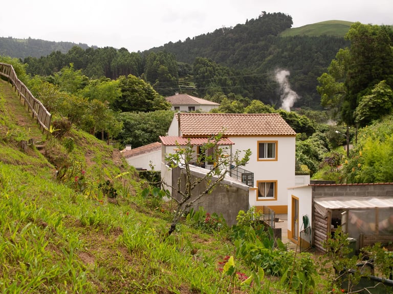 Ein abgeschiedener Rückzugsort im Vulkankrater von Furnas auf São Miguel, Azoren.